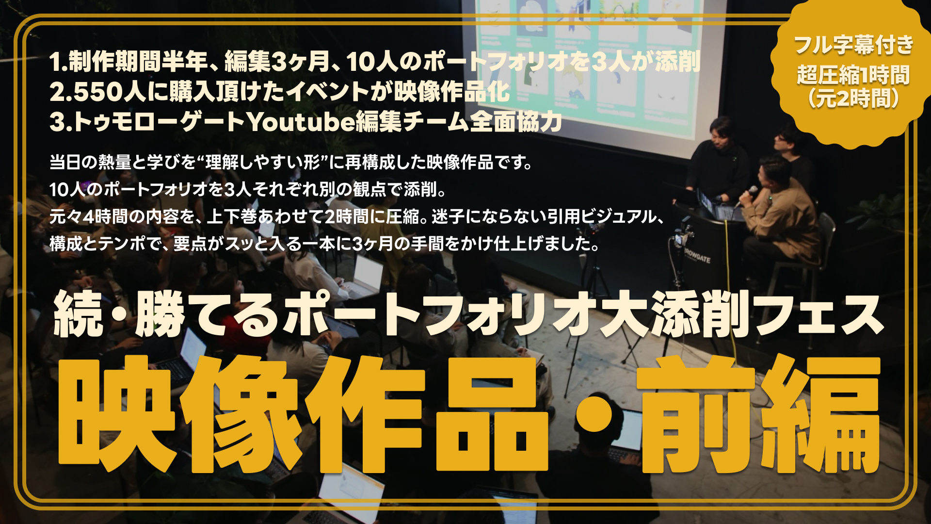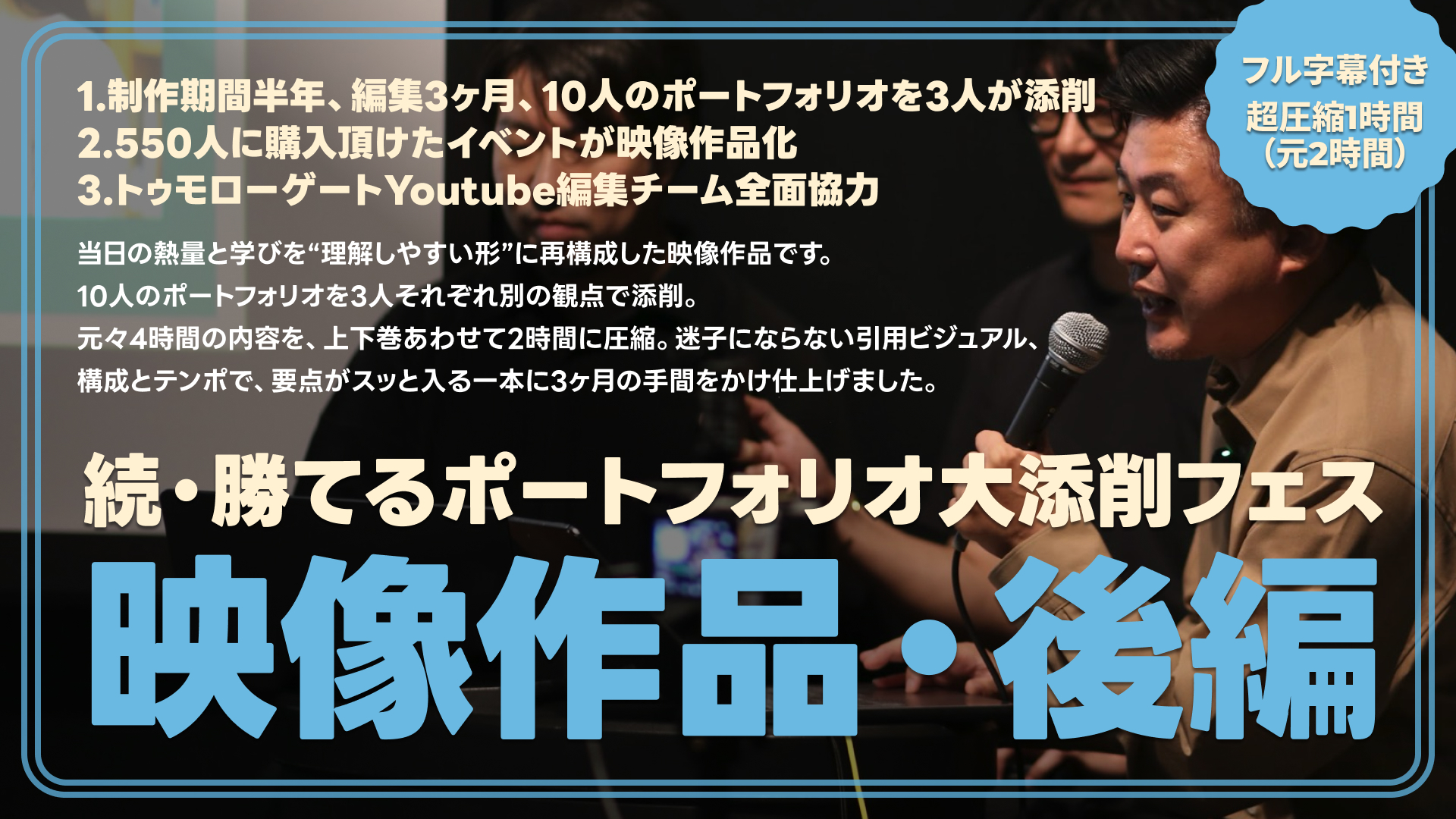 「続・勝てるポートフォリオ 大添削フェス2025」は、多くの方にご参加いただき、そしてイベント後、SNSやnoteで多くの感想やレポート記事が投稿され、参加者の皆さまの熱量を感じることができました。ご参加いただいた皆さま、共催いただいたトゥモローゲート株式会社の皆さま、そして登壇者の阿部文人氏、岩松翔太氏に改めて感謝申し上げます。